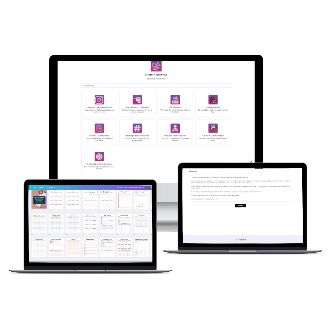 The Social Media Post Toolkit Vault is your plug-and-play content vault filled with smart GPT tools that take the guesswork out of posting. Whether you're planning a full month or need something fast before hitting “publish,” these tools do the heavy lifting — no awkward AI tone, no burnout, no overthinking.
